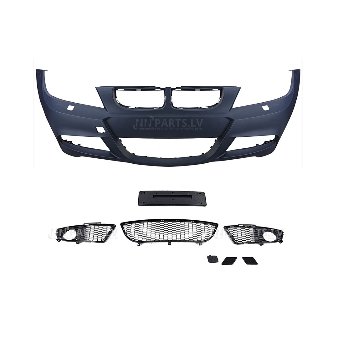 • BMW E90 / E91 LCI dizaina M Sport priekšējais bamperis (05.-08.) atsvaidzinās auto izskatu, padarot to agresīvāku, sportiskāku, kā arī, liks tam izcelties